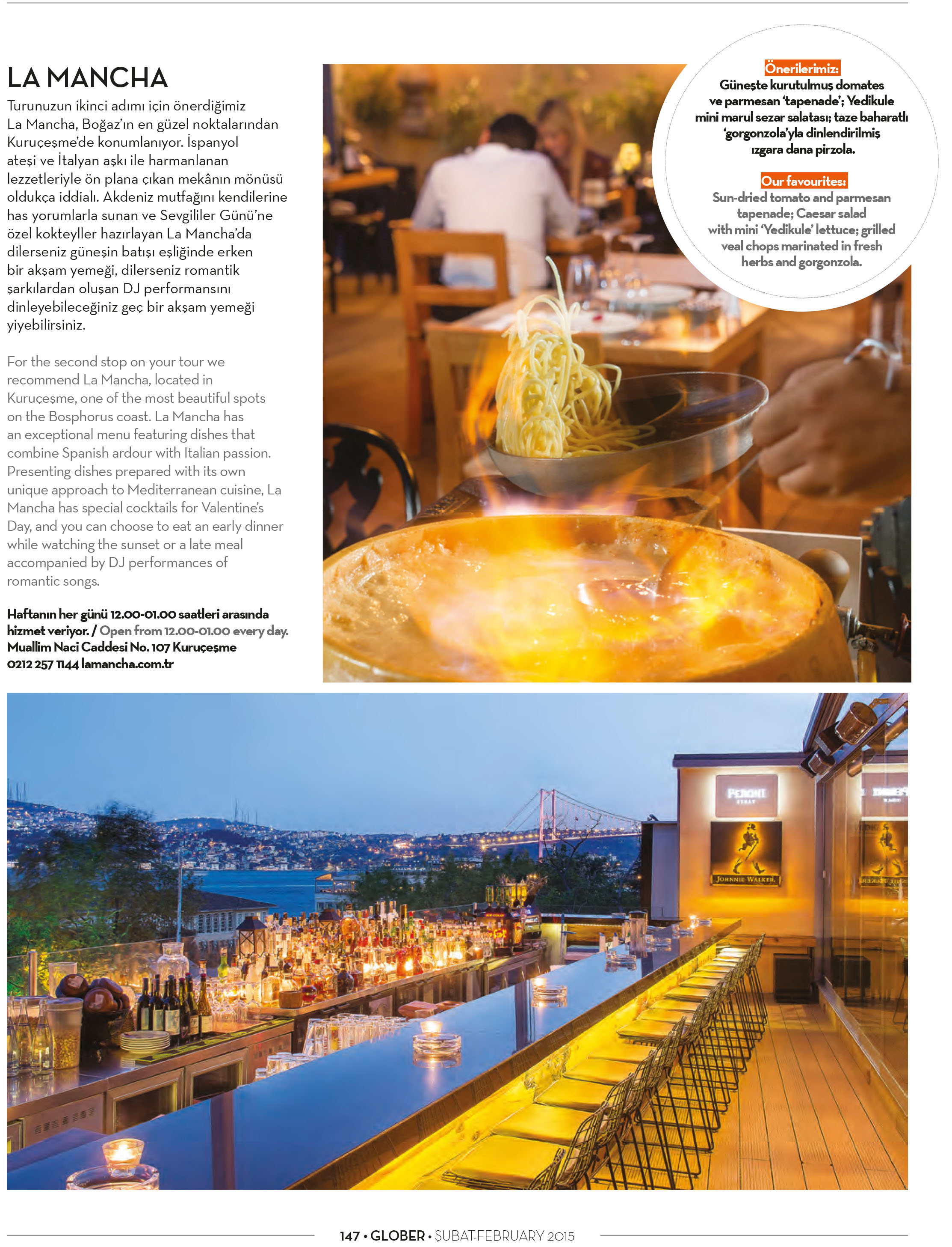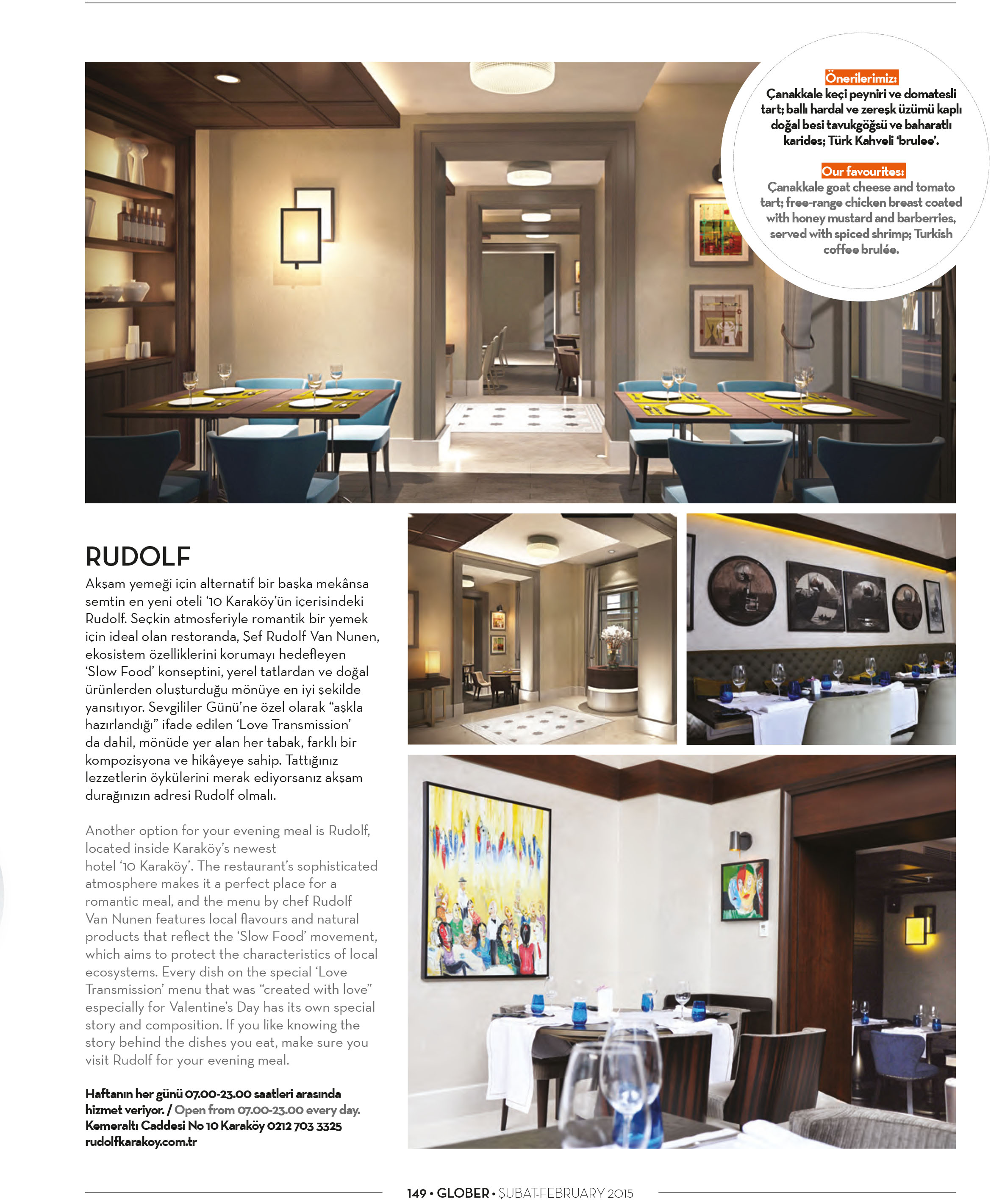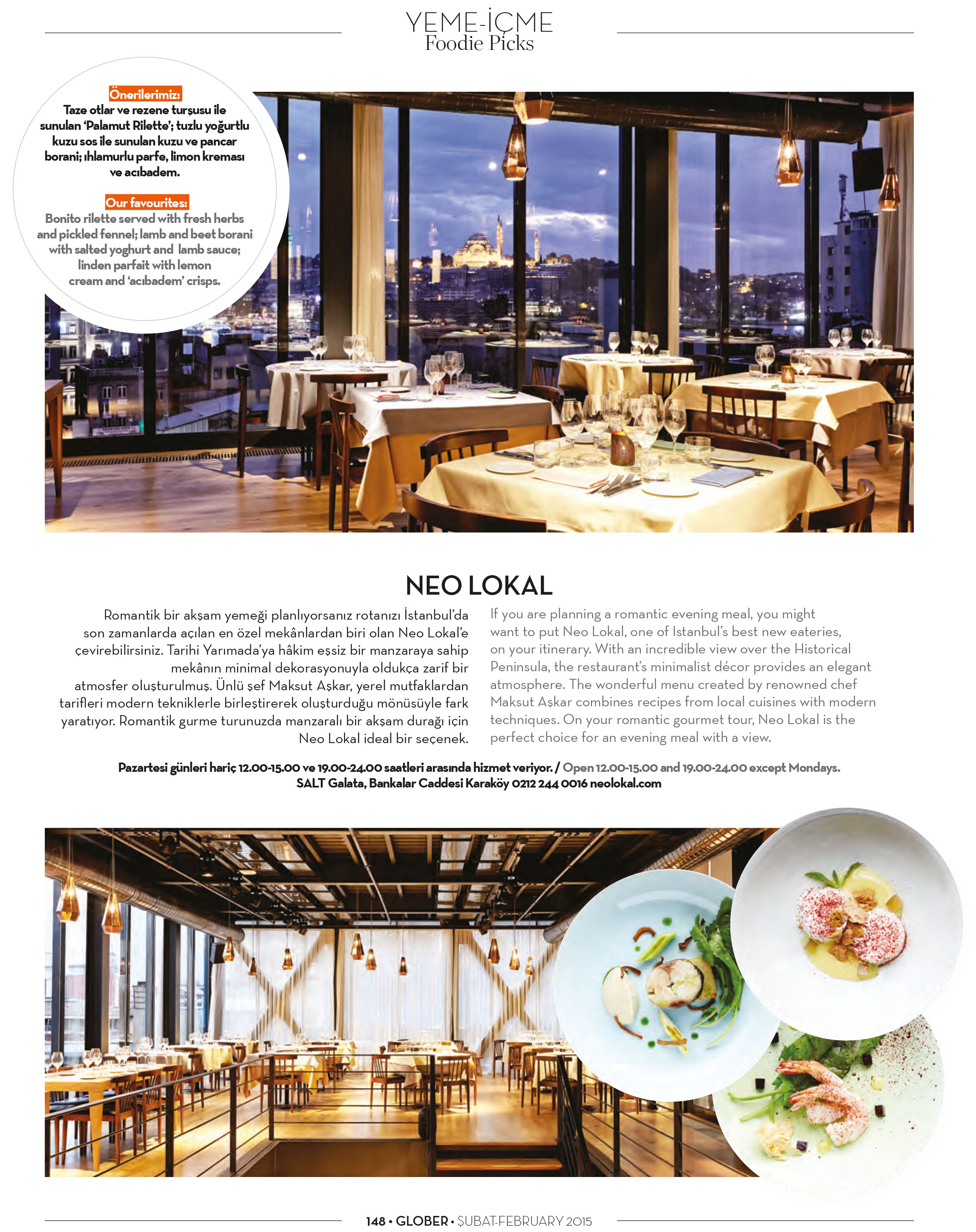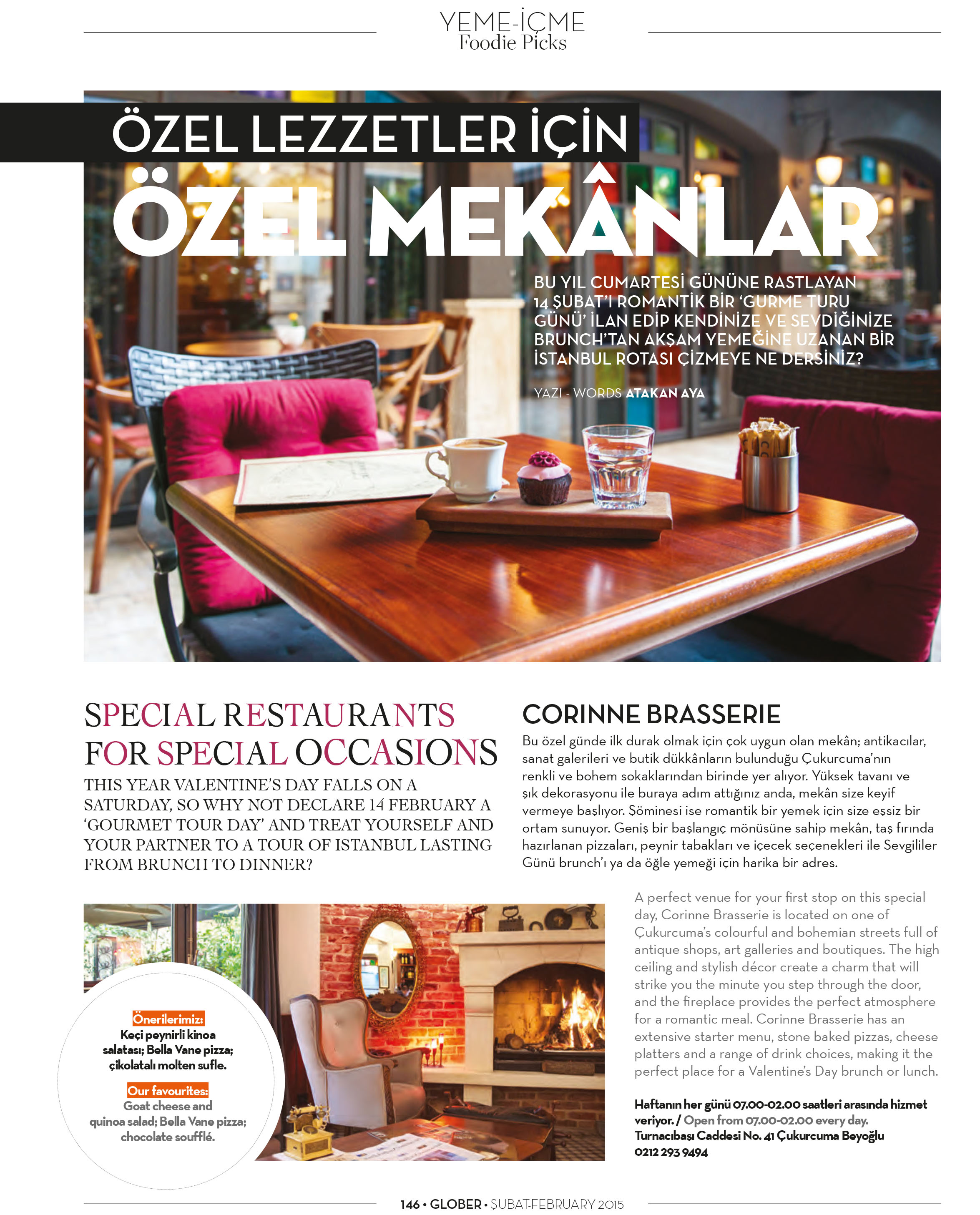 Özel lezzetler için özel mekanlar bu ay Glober dergisinde